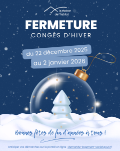 La Maison de l’Habitat de Reims sera fermée du 22 décembre 2025 au 2 janvier 2026 inclus.